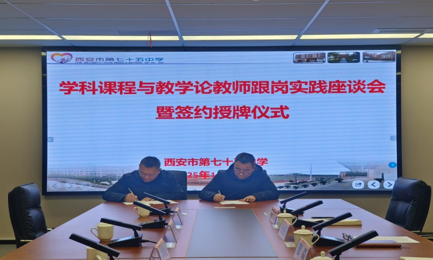 座谈会上,任教公司负责人对井强山一行的到来表示热烈欢迎,并就公司选派优秀教师到中学任教的举措给予高度赞扬。任教公司负责人详细介绍了任教教师在师风师德、日常教学、教研活动等方面的情况,并给予高度评价。井强山代表伟德国际victor1946官网与西安市第七十五中学签订了教育实践基地协议书。