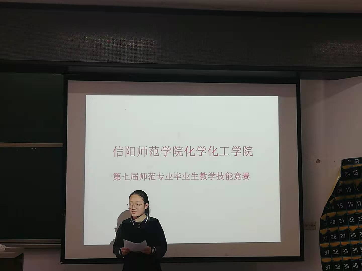 为提高公司师范毕业生就业从教技能,展现化学师范毕业生的优秀风貌,11月14日,伟的国际1946bv官网在教4-T1举办2021届师范类毕业生教学技能大赛初赛。党委书记郭鹏、副经理骆定法、化学学科教学专业教师沈久明等领导老师莅临观摩并担任评委。