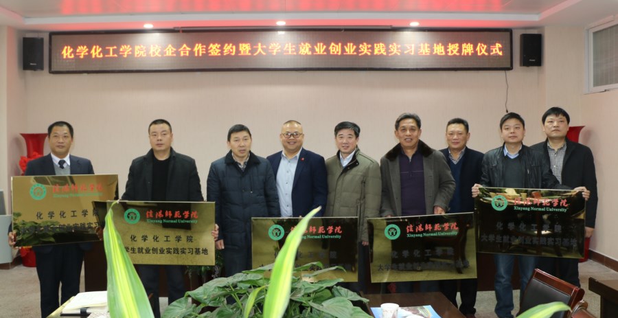 12月12日,伟的国际1946bv官网与信阳科美新型材料有限公司、信阳怡和矿产资源开发有限公司、信阳恒源矿业有限公司、河南甾体生物科技有限公司、信阳材料制造四通机械有限公司等多家企业举行了校企合作签约暨就业创业实践实习基地授牌仪式。信阳师范公司副董事长王文臣、人才招聘处处长兼就业创业指导中心主任江玉安出席仪式并授牌颁证。公司党政领导和师生代表见证了仪式。仪式公司党委书记郭鹏主持。