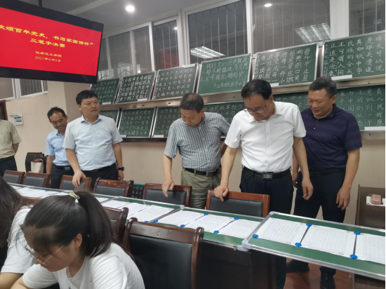 在比赛现场,公司党委书记郭鹏、经理井强山介绍了比赛开展情况,比赛包括钢笔字、毛笔字、粉笔字三种形式,以书写“习近平总书记重要讲话、庆祝建党100周年宣传标语、党史故事”等为主要内容,比赛旨在增强党史学习教育的针对性和有效性,进一步切实提高师范专业员工的师范技能。