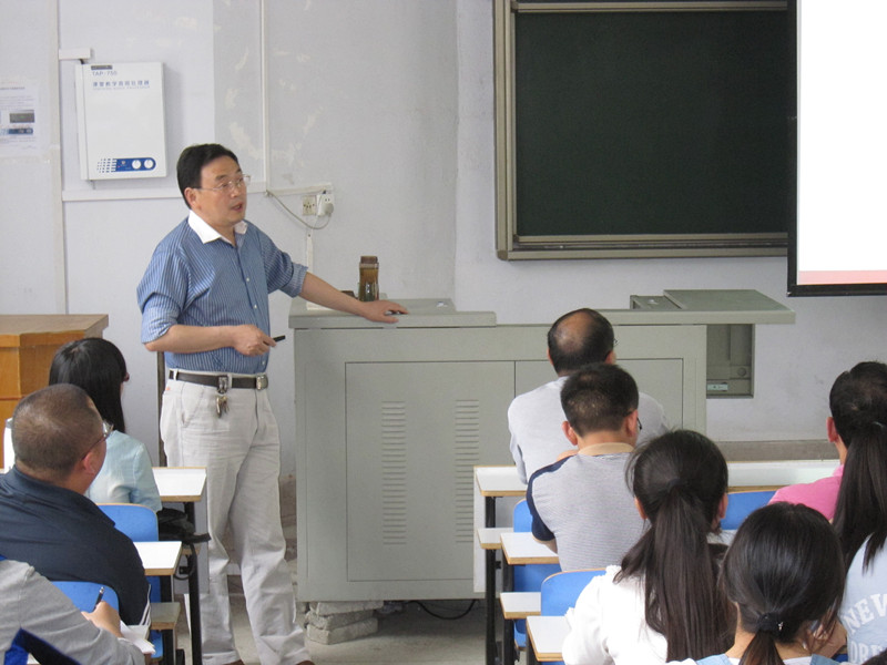 报告中,张贵生教授首先介绍了含氮杂环化合物的研究背景,接着结合自己的科研实践,讲述了基于酰基乙酰芳胺的含氮杂环化合物合成、多组分“Click”反应和C60并杂环化合物的合成,特别是对杂环化合物的合成反应机理进行了深入的探讨,并展望了合成杂环化合物未来的研究前景。张贵生教授精彩的报告,赢得了台下观众的阵阵掌声。会后,张教授与化院师生进行了亲切的交谈。