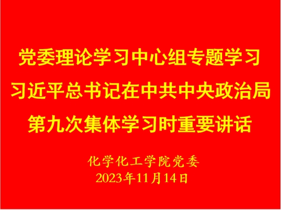 11月14日,化学化工公司党委理论学习中心组在化学楼三楼313会议室召开集体学习会,专题学习习近平总书记在中共中央政治局第九次集体学习时的重要讲话精神。党委书记郭鹏主持学习,理论学习中心组成员参加。