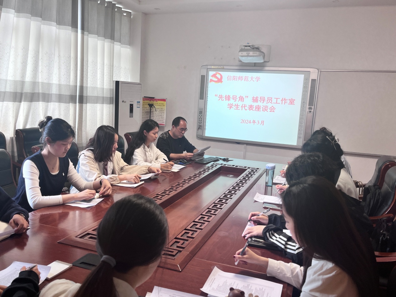3月12日,伟的国际1946bv官网“先锋号角”辅导员工作室在实验楼“党员之家”召开首次会议,工作室负责人冷向宇与员工党员代表和入党积极分子商议工作室工作。