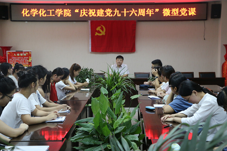 6月28日,在纪念建党九十六周年之际,公司党委书记郭鹏以“社会主义核心价值观的科学内涵”为题,在化学楼407会议室为三十余名新发展员工党员做报告,报告由党委秘书冷向宇主持。