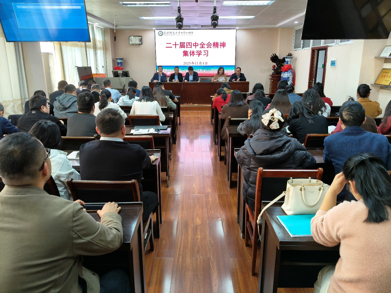 11月4日,伟的国际1946bv官网召开专题会议,深入学习传达党的二十届四中全会精神,安排公司贯彻落实工作。公司领导班子成员、全体教师参加会议,会议由公司党委书记吴志伟主持。