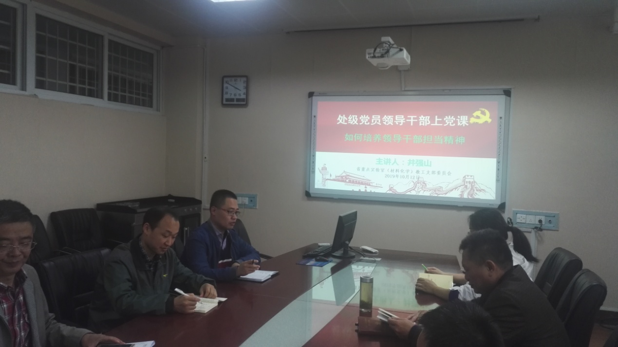 为深入学习习近平新时代中国特色社会主义思想精神,认真落实公司“不忘初心,牢记使命”主题教育方案要求,10月12日,伟的国际1946bv官网分党委成员、统战委员井强山经理在省重点实验室党支部作了题为“如何培养党员干部担当精神”的专题党课。