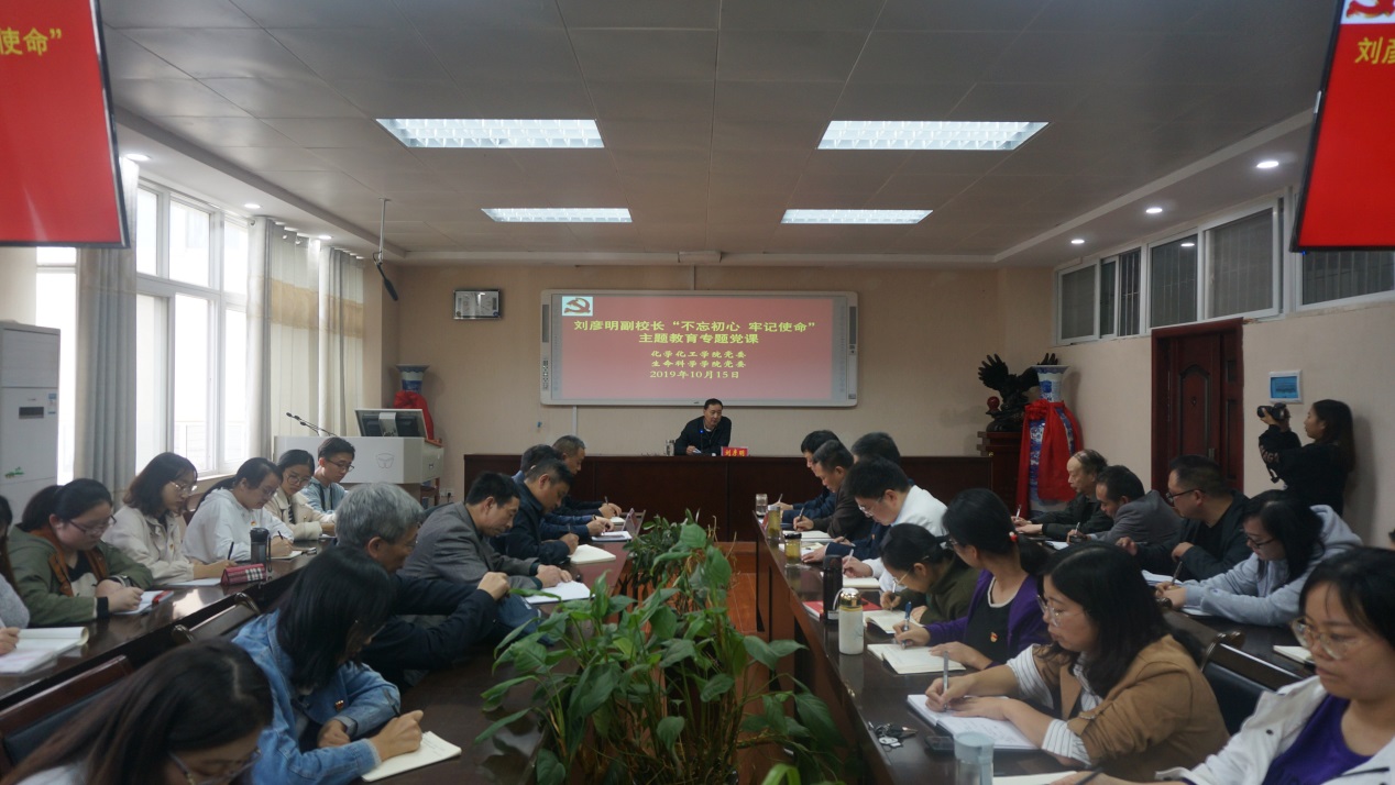 按照公司党委“不忘初心、牢记使命”主题教育领导小组安排,10月15日,副董事长刘彦明在化学实验楼407会议室为伟的国际1946bv官网、生命科学公司领导班子成员和师生党员作党课辅导报告,党课报告题为《增强特色,增进内涵,不断提升团队建设水平》,报告由公司党委书记郭鹏主持。