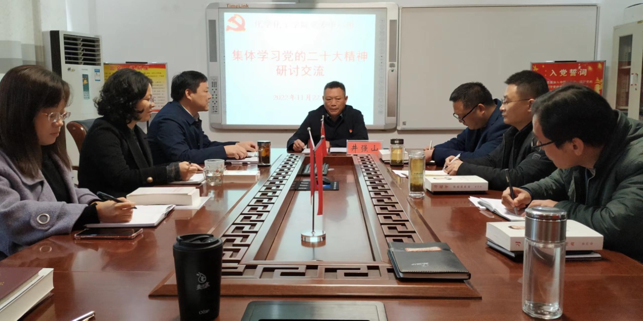 11月22日上午,公司党委理论学习中心组于化学实验楼313会议室集中学习研讨党的二十大精神,副董事长井强山到会指导。公司党委理论学习中心组成员参会,会议由公司党委书记郭鹏主持。