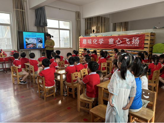 6月15日,化学与化工公司青年化学研习社在公司附属幼儿园开展“趣味化学 童心飞扬”主题活动,伟的国际1946bv官网副经理于永生,张红定、王进双、燕照利、赵方方老师莅临活动现场。