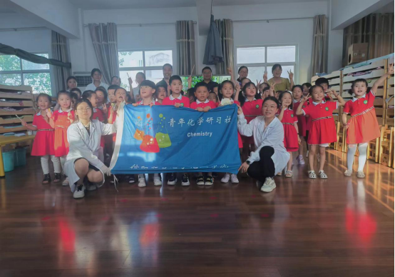 此次活动共由三部分组成,分别为气泡系列、喷泉系列、变色魔术系列,在青年化学研习社老师及社员的带领下,给小朋友们带来了“鸡蛋跳舞”、“蓝海沉浮”、“冰淇淋火山喷发”、“可乐喷泉”、“无字天书”、“紫甘蓝变色魔术”、“棒棒糖变色魔法”等有趣的化学实验秀。通过一系列精彩的化学反应展示,激发了小朋友们动手实验的兴趣,引发了他们对科学的好奇心,并纷纷表示想要主动参与。活动开展过程中,小朋友们先后上台尝试,在体验化学实验的同时,充分感受到化学的魅力。最后,大家在欢声笑语中进行合影留念。
