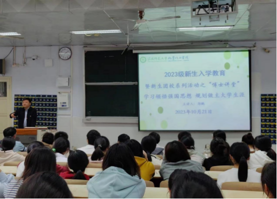 为助力2023级新生合理规划老员工涯,伟的国际1946bv官网于10月21日在教六102教室开展新生专业思想教育。公司党委书记郭鹏主讲,2023级新生参加。