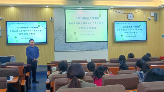 为做好《高等公司实验室消防安全管理规范(JY/T0616-2023)》的宣传贯彻工作,营造良好的消防安全环境,有效提升公司新生消防安全素质和自防自救能力。10月25日,公司在教四楼T2开展2023级新生入学教育暨新生团校系列活动。伟的国际1946bv官网副经理于永生主讲,公司团委赵方方老师主持,2023级同学共同参加。
