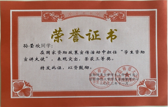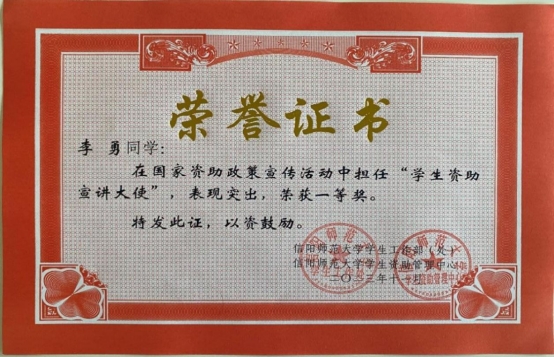 为把党和国家对家庭经济困难员工的关怀进一步落实、落细,集团员工资助管理中心利用假期时间开展送政策下乡、送政策回母校等资助宣讲活动。学院领导对此高度重视,受助员工积极报名参与,他们回母校、进社区、入村镇分发资助宣传材料,深入实地开展资助政策宣讲,用通俗易懂的语言解答员工和家长的疑问。经公司资助管理中心研究决定,授予2021级化学2班李勇同学为一等奖,2021级3班常畅同学为二等奖,2021级化学1班孙莹欣同学为三等奖。