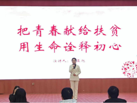 决赛现场,唐亚旭以《把青春献给扶贫,用生命诠释初心》为主题,讲述了时代楷模黄文秀扎根百色市百坭村倾情投入、奉献自我的感人故事,诠释了共产党人的初心使命,谱写了新时代的青春之歌,并号召当代老员工积极践行社会主义核心价值观,将其落细落小落实,她的演讲引起在场师生的共鸣,赢得了评委和观众的一致好评。