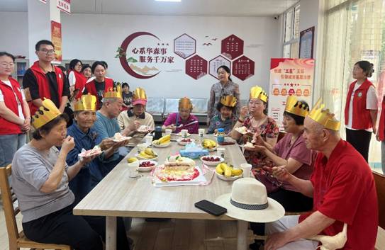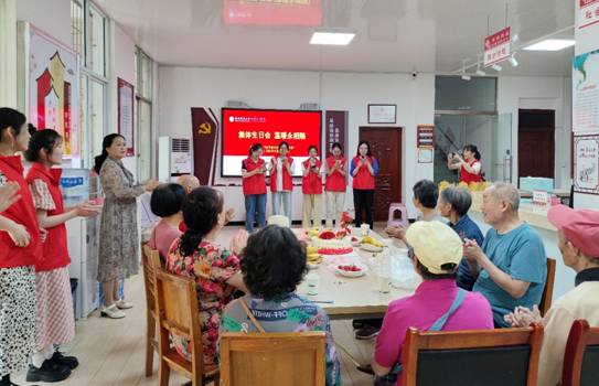公司党员们提前准备了生日蛋糕和水果,并和社区工作人员一起布置了场地。集体生日会开始,首先员工党员岳亚鑫、刘文慧带领老人们做益智拍手操《啊啦桑桑》,进行暖场。然后老人们边吃水果,边欣赏由员工党员们带来的表演。王睿颖、常畅、张金红等带来的歌曲《你笑起来真好看》燃起了全场热情。张京美、刘仪琳、郭可欣等的歌曲《生日祝福歌》给老人们送去了祝福。最后,大家一起唱《祝你生日快乐》歌,老人们许愿吹蜡烛,大家一起吃生日蛋糕。