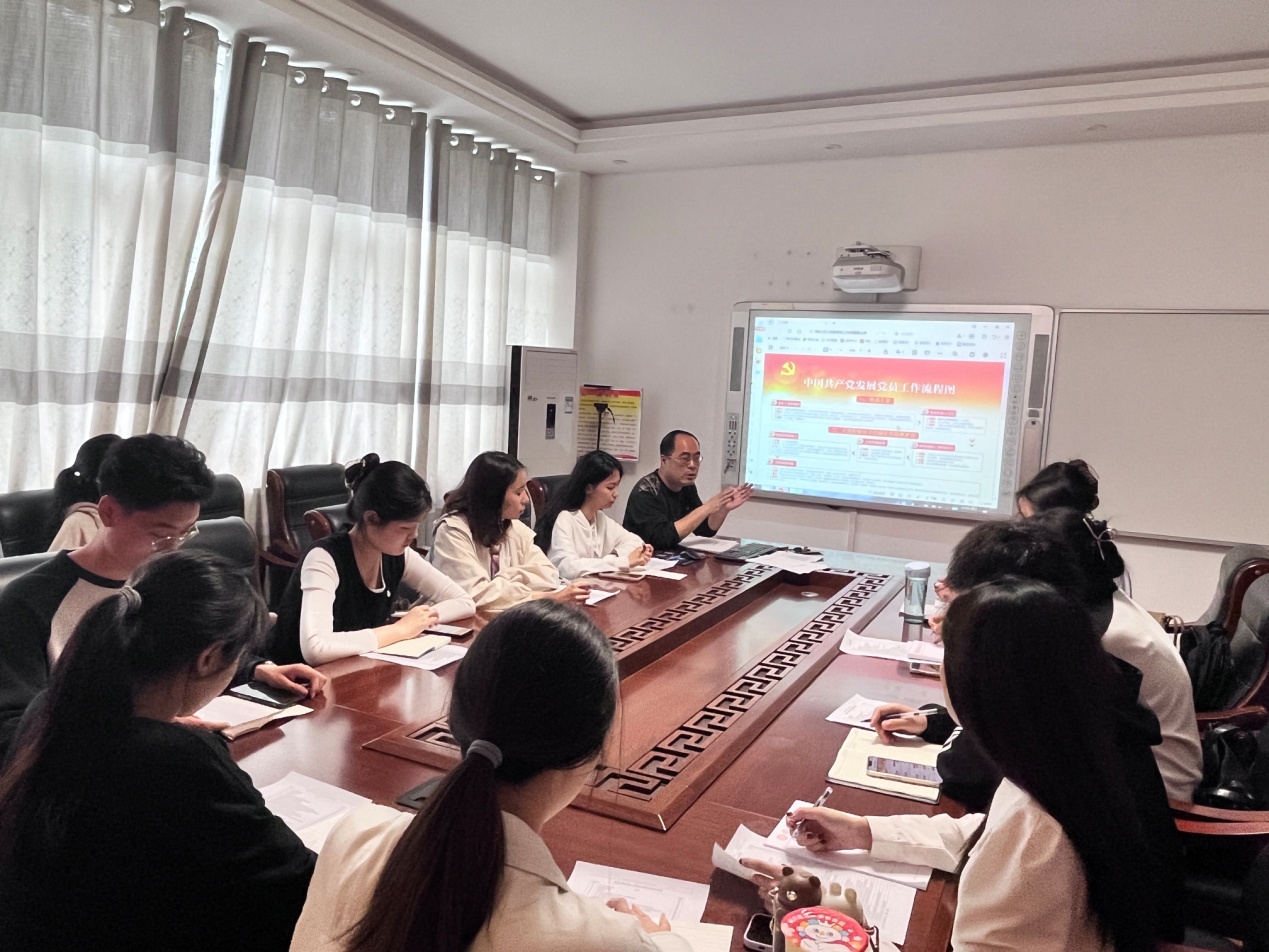 4月14日,伟的国际1946bv官网“先锋号角”辅导员工作室开展入党积极分子党纪学习教育,引导学员通过听学、践学、讲学,提高理论修养、增强能力本领,以实际行动争取早日加入党组织。