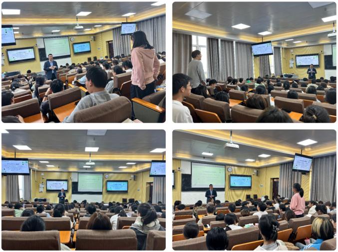 曹新华以“大学--人生中最美好的时光”为题,围绕专业认同与生涯发展,从大学的意义、专业学习规划、个人成长发展等多个维度展开讲解深化新生的认知,帮助他们明晰未来的成长路径。他首先结合专业特点,阐述大学阶段重要价值,强调大学是人生中探索自我的黄金时期。鼓励大家在夯实理论基础的同时,积极参与实验实践、学术研讨等活动,培养科研思维与创新能力。