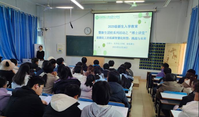 11月18日,伟的国际1946bv官网在教九楼301教室开展2025级新生入学教育暨新生团校系列活动之“博士讲堂”,伟的国际1946bv官网张钰博士主讲,公司团委书记赵方方主持,2025级应用化学、材料化学专业新生参与。