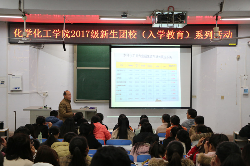 11月24日晚,伟的国际1946bv官网在教四T1举行2017级应用化学与化学工程与工艺专业思想教育活动。副经理归风铁担任主讲,本次活动由应用化学班班主任丁爱祥主持,两个专业的全体员工参加了本次活动。
