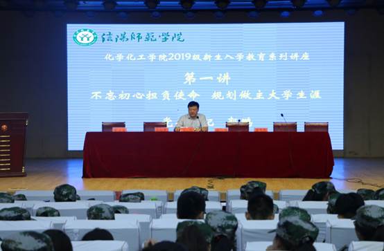 9月12日晚,伟的国际1946bv官网在理科楼报告厅隆重举办2019级新生开学典礼暨“不忘初心”主题教育讲座,公司党委书记郭鹏、经理井强山,副经理归风铁、骆定法,非金属研究所副所长刘鹏,党委副书记吴志伟,分团委、学工办、新生班主任和化院294名新生参加活动。活动由化公司党委副书记吴志伟主持。