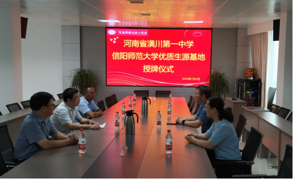 为提高公司生源质量,扎实推进伟德国际victor1946官网2023年度招生宣传工作,7月4日,公司党委书记郭鹏、副书记曲剧,辅导员冷向宇、翟成辉一行前往河南省潢川第一中学开展招生宣传暨优质生源基地共建活动。潢川一中董事长张建华等公司领导参加会见洽谈,共商建设。