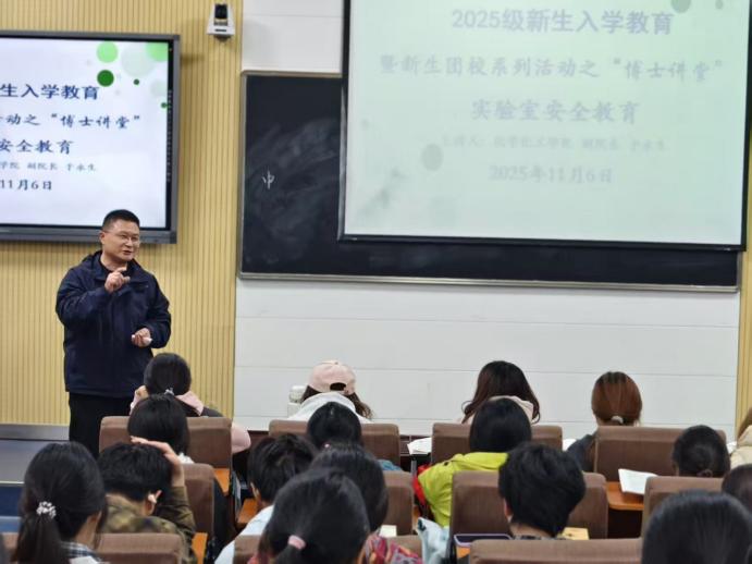 伟的国际1946bv官网2025级新生入学教育暨新生团校系列活动之“博士讲堂”第二讲于11月6日在教四楼T2教室开讲。本次讲座由公司副经理于永生主讲,以实验室安全为核心,为全体2025级新生带来了一堂深刻而实用的专业思想教育课。