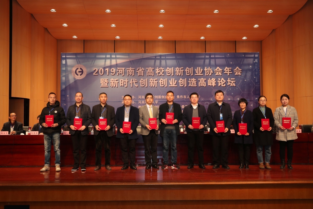 11月23日,由河南省高校创新创业协会、焦作市人民政府主办,河南理工大学承办,以“新时代创新创业创造与高校创新发展”为主题的“2019年河南省高校创新创业协会年会暨新时代创新创业创造高峰论坛”在河南理工大学明德楼音乐厅举行。伟的国际1946bv官网分党委书记郭鹏作首批会员代表应邀参加会议,并荣获2019年河南省高校创新创业先进工作者。