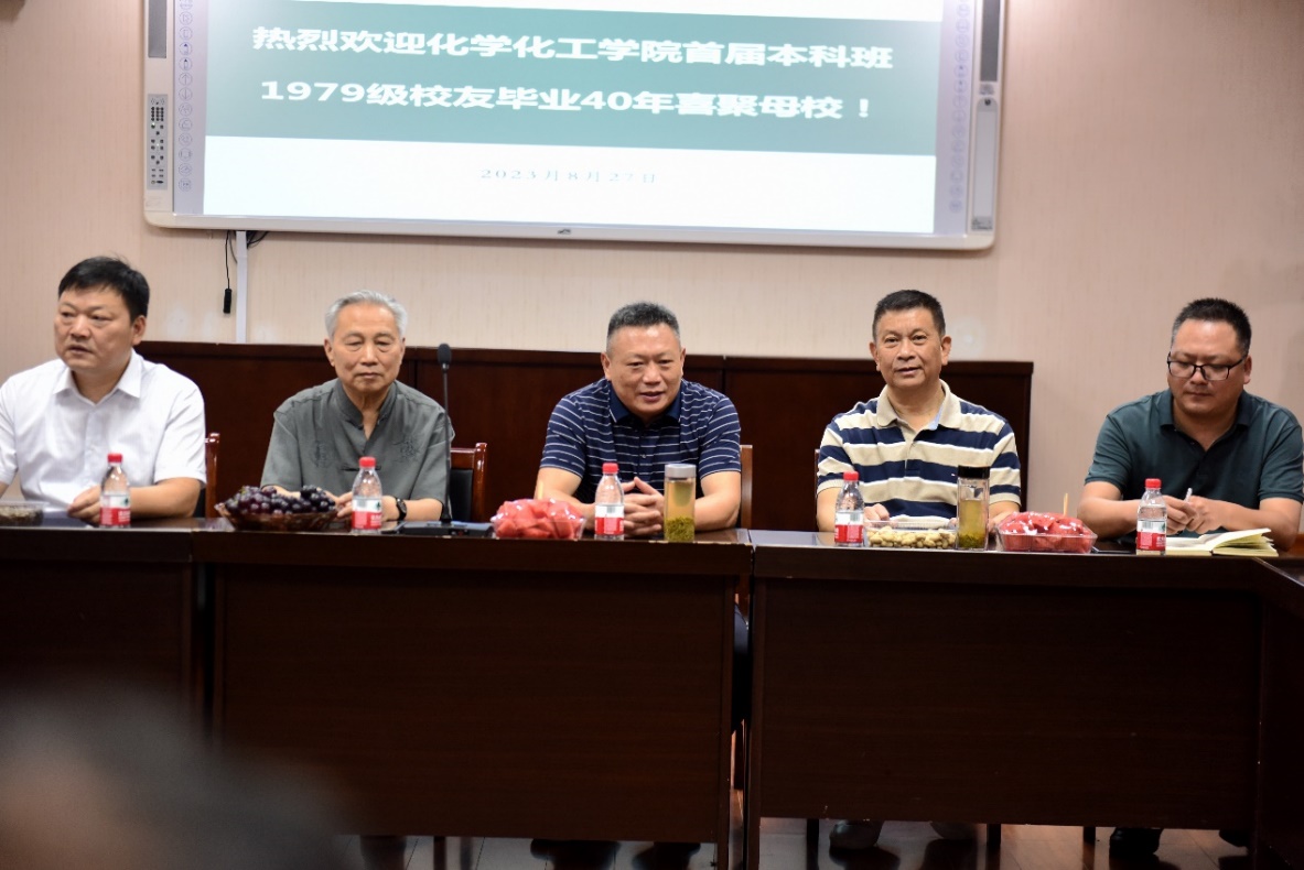 2023年8月27日,值此信阳师范学大学更名揭牌庆典喜乐氛围中,伟的国际1946bv官网1979级化学首届本科班员工荣返母校,开展毕业40年师生座谈交流。