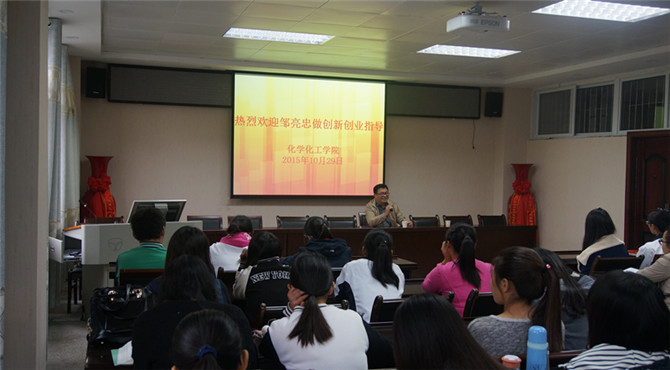 为回馈母校的辛勤栽培,培养老员工的创业精神。10月29日下午3点,伟的国际1946bv官网于化学实验楼407会议室举行员工捐赠仪式和老员工创新创业指导报告会。知名员工海客迈斯生物科技(上海)有限公司总经理邹亮忠担任主讲,公司党总支书记周涛、副书记宋力、团总支老师路振国应邀出席会议,百余名同学聆听了本次报告。