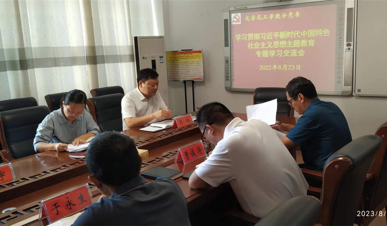 8月23日下午,公司党委理论学习中心组开展习近平新时代中国特色社会主义思想主题教育专题学习。公司党委书记郭鹏主持学习活动。