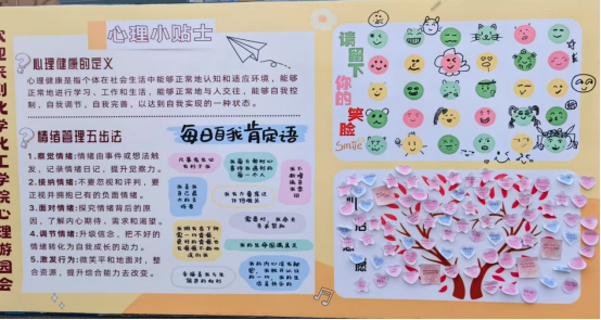 本次心理游园会活动内容丰富,形式多样,互动性强,包括脑力挑战区、情绪体验区、艺术疗愈区和趣味游戏区四个子分区。在脑力挑战区,同学们积极参与,踊跃回答,学习了生活中的化学知识,感受到化学的独特魅力。在情绪体验区,同学们畅所欲言,在心愿板上寄托美好祝愿,留下自己的专属笑脸。同时设立“情绪回收站”,为参与者提供情绪宣泄和分享快乐的平台,释放负面情绪,增强心理调适能力。在艺术疗愈区,同学们在音乐展示台上纵情歌唱,用歌声传达自己的心声,用音乐表达自己的想法。在手工diy的过程中,同学们发挥想象力和创造力,将自己的情感和想法转化成具体的作品,传达对生活的热爱和对未来的憧憬。在趣味游戏区,“不倒森林”考验默契配合程度,“珠行万里”锻炼团队协作能力,同学们投入其中,团结一致,即使出现失误也及时调整,收获了愉快的游戏体验,迸发出青春的蓬勃朝气。