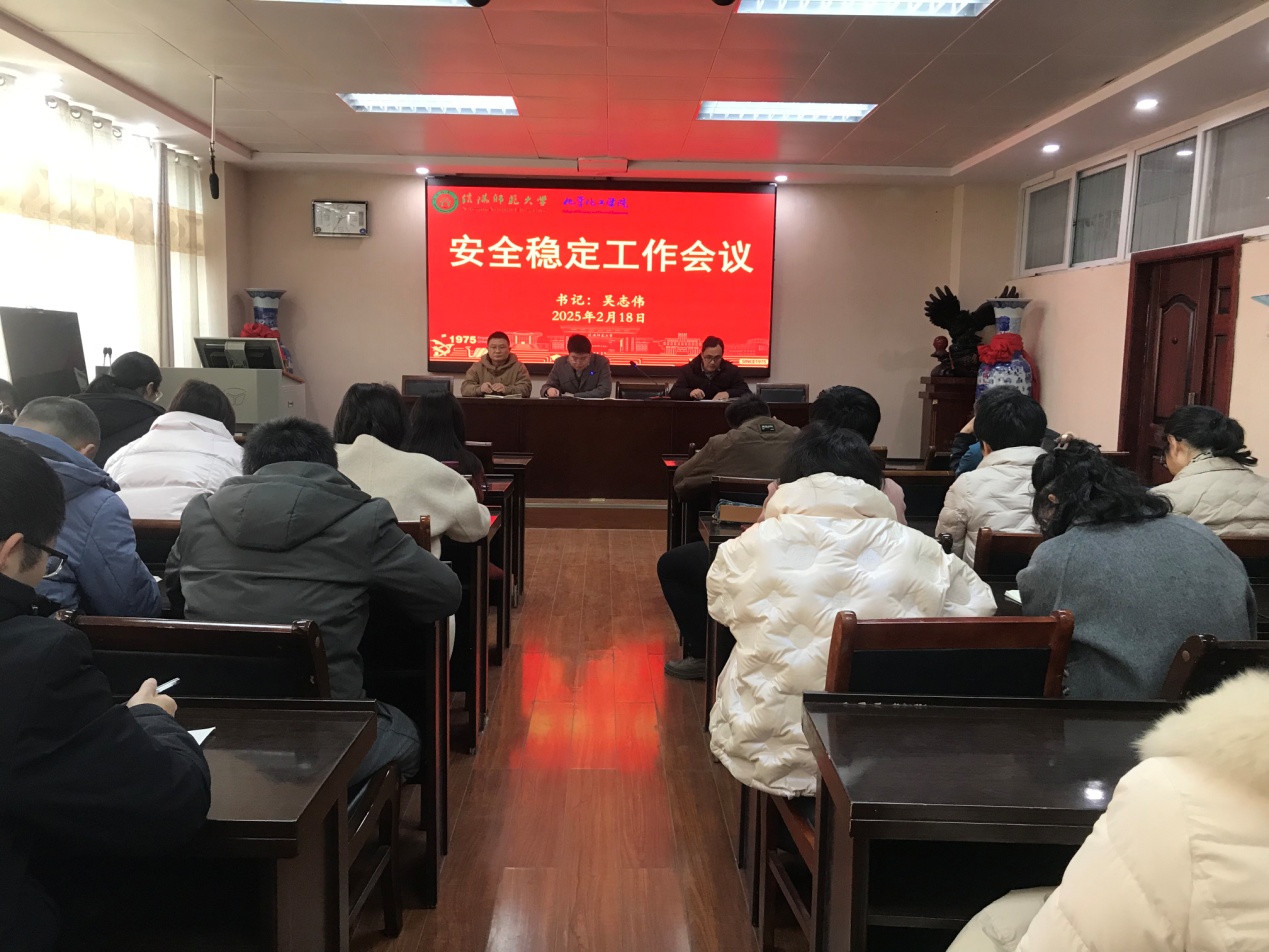 2月18日,伟的国际1946bv官网在实验楼407会议室召开2025年春季安全稳定工作会议。公司党委书记吴志伟主持会议,全体教职工参加会议。