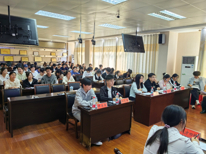 历经初、复赛的选拔,决赛分为两场。第一场辩题“新时代青年走出去还是留下来更能体现价值”是对当今时代的青年走出去还是留下来这个现实问题的思辨,答案也随着辩论的进行在每个人的心中渐渐明晰;第二场辩题对“弘扬中华传统文化重在传承还是创新”进行探讨,同学们在思辨中逐步领会此辩题的现实意义。每场比赛结束后,评委们进行发言总结,向辩手们提出建议及鼓励,辩手虚心请教,积累经验。最后,参赛选手与评委合影留念。