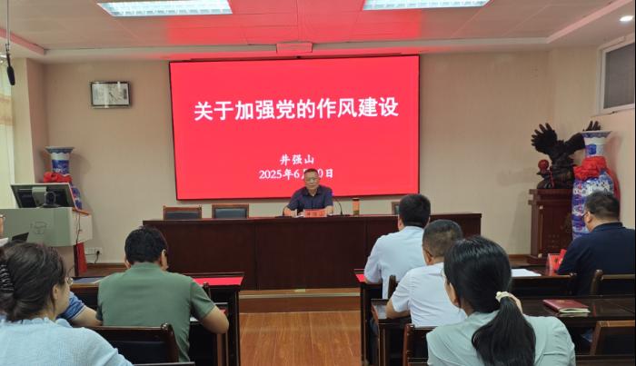 井强山以《关于加强党的作风建设》为题做辅导报告。他指出,作风建设是党的建设的永恒课题,要融入日常、抓在经常、落到平常,结合高校工作实际,深入分析了当前高公司党员干部在作风建设方面存在的突出问题,通过典型案例进行了警示教育。他强调,一是要加强理论武装,筑牢思想根基。理论学习要走深走实,学深悟透加强作风建设的重要论述,深刻领悟抓好作风建设的重要意义。二是要强化师德师风,涵养教育情怀。优良作风是师德师风的重要体现,在政治作风、生活作风、学术作风上有高标准严要求,在科研诚信、学术道德等方面发挥表率作用。三是要提升能力素质,服务发展大局。既要政治过硬,也要本领高强,要着力培育一支“想干事、干成事、干正事”的青年教师队伍,以博士点申报为契机,不断推动公司各项事业蓬勃发展。