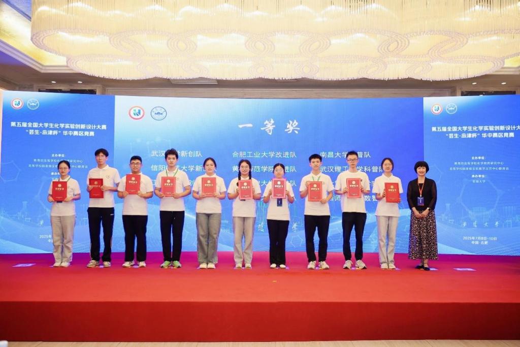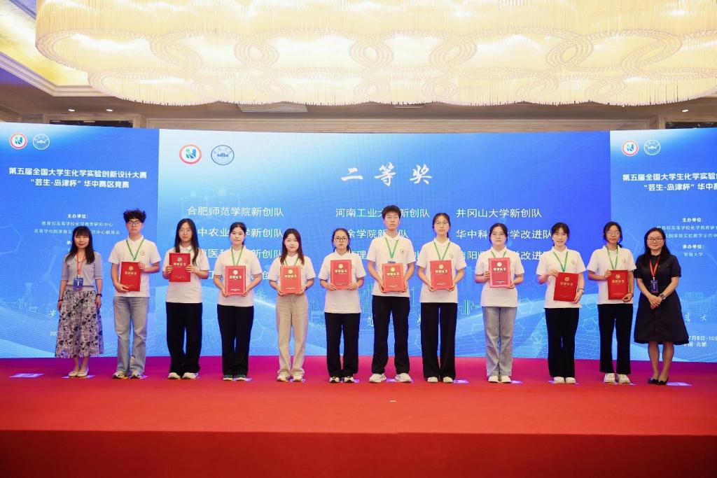 本届竞赛共有来自湖北省、河南省、安徽省和江西省的80所高等院校227支队伍700余名本科生参赛。经专家函评,109支队伍入围赛事复赛环节。公司伟的国际1946bv官网遴选的两支参赛队伍(陈思帆、苏盈盈、陈鑫雨,指导教师:马献涛副教授、曹俊涛教授;米芸璐、王雨晴、忽朴宁,指导教师曹新华教授)经过精彩展演、沉着应答、奋力拼搏,分别获得一等奖、二等奖,充分彰显了公司在化学实验教学改革与创新人才培养方面的深厚积淀。
