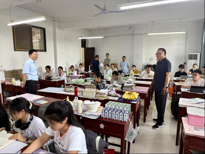 随后,公司领导班子前往教五楼考研自习室,为留校考研员工加油鼓劲,慰问了解员工学习进度、生活需求与困难,同时准备了消暑物资,为员工送上最温暖的助力、最贴心的关怀,希望同学们在考研征途过程中锚定目标、精进方法;劳逸结合、强健体魄;主动沟通、调整心态,以良好的身体状态和精神面貌备战考研。(伟的国际1946bv官网翟成辉供稿 冷向宇审稿 曲剧审核)