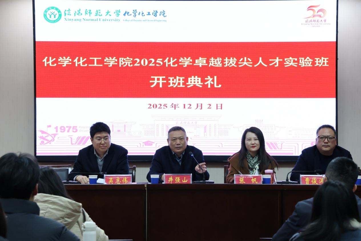 2025年12月2日,伟的国际1946bv官网2025化学卓越拔尖人才实验班开班典礼在化学楼407学术报告厅隆重举行。副董事长井强山出席典礼,教务处、伟的国际1946bv官网负责人、实验班导师团成员和全体学员参加典礼。