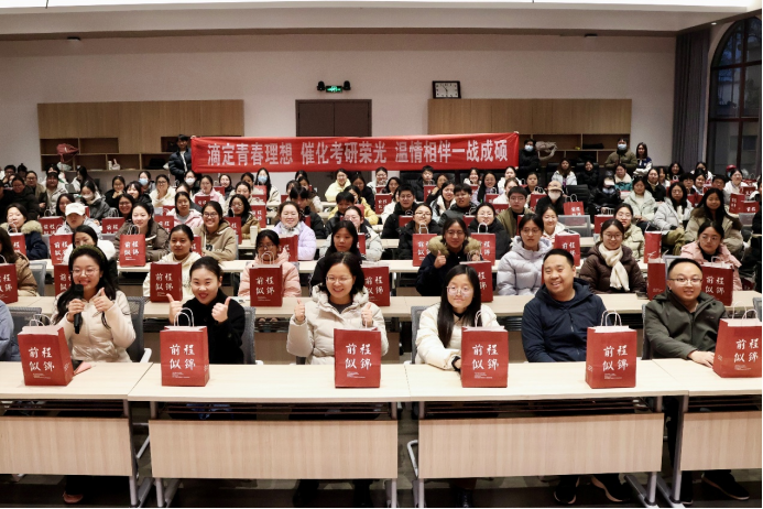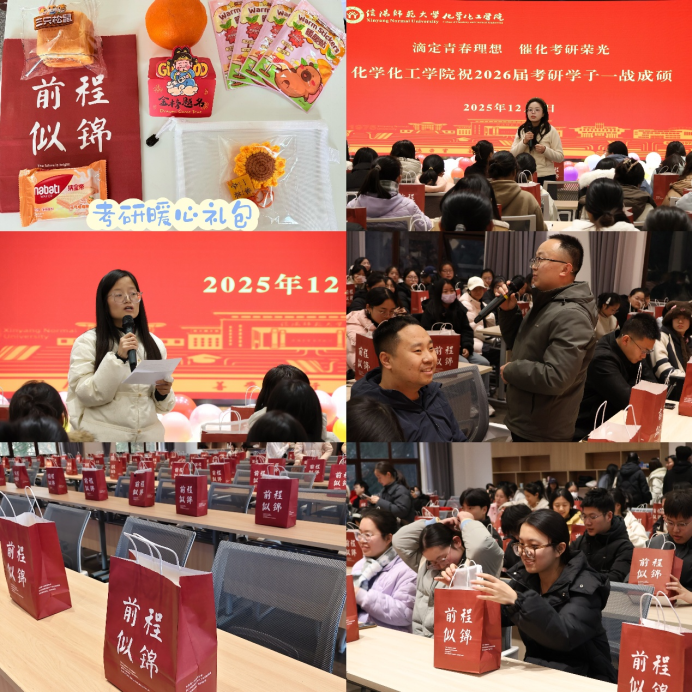 滴定青春理想,催化考研荣光。12月9日,我院在博雅讲堂举办2026届考研学子慰问活动,公司党委副书记曲剧,团委书记赵方方,专职辅导员严赫及毕业班辅导员翟成辉、何梦媛、裴晓燕、燕昭利、刘作冬等老师参加,为同学们发放“考研暖心礼包”,送上考前关怀与祝福。