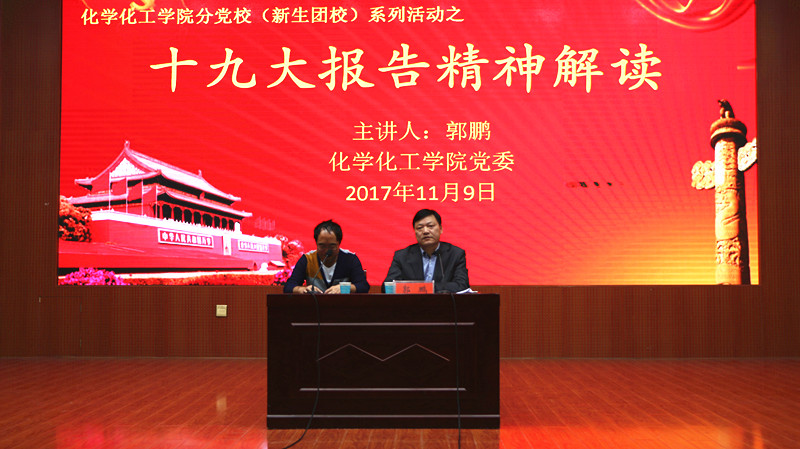 11月9日,公司党委书记郭鹏在逸夫楼报告厅与该院2016、2017级员工座谈交流,为大家深度解读十九大精神。