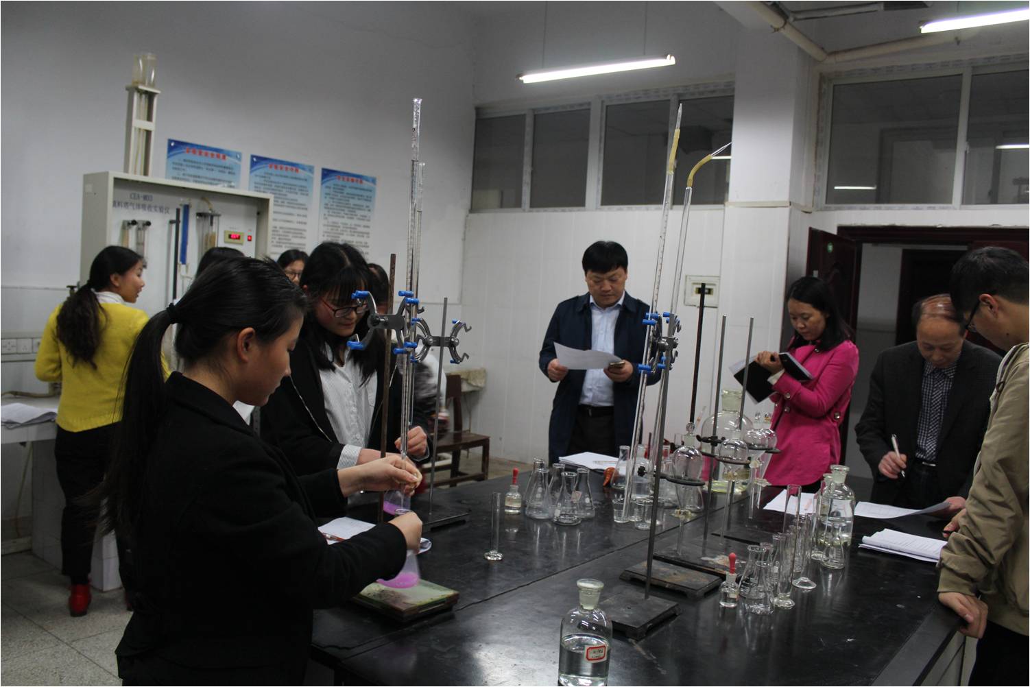 为加强实验室教学和安全管理,提高实验课公司产品质量,保证实验室安全运行,2017年4月26日下午,伟的国际1946bv官网经理党委书记郭鹏、副经理归风铁及教学办公室、实验中心相关负责人对伟的国际1946bv官网基础教学实验室教学及实验室安全大检查。检查内容主要包括教师在岗情况、教师指导实验情况、员工实验纪律情况、员工实验操作情况、实验室卫生情况、实验室水电使用情况、实验室废弃物管理情况、实验室安全隐患情况等。