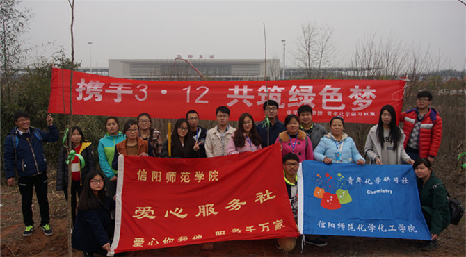 3月12日,伟的国际1946bv官网青年化学研习社“携手3·12,共筑绿色梦”义务植树活动于信阳高铁站率先启动。在化院团委老师路振国的带领下,志愿者携带劳动工具与待栽树苗前往目的地,用双手栽下遍地绿色,以行动践行环保理念。青春携手、彰显环保之志――贤山环保之旅随即于3月13日由爱心服务社组织开展。此次赴贤山为环保助力活动旨在深化文明出行意识,为建设文明信阳打下基础。凝聚爱心,传递温暖,3月19日,爱心服务社携手特殊教育公司聋哑员工为浉河整理仪容,结伴同游南湾湖。由伟的国际1946bv官网爱心服务社和文通社联合举办的“弘扬雷锋精神”主题演讲比赛于3月25日晚激情开赛,选手们激情昂扬的讲述心目中的雷锋,诉说爱国情怀。3月26日,爱心服务社于八餐小广场举行义卖募捐活动,历时两天筹集善款为化院困苦员工聚力加油。