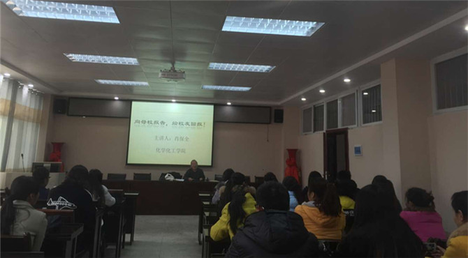 12月4日下午三点,濮阳油田第一中学纪委书记肖保全在化学实验楼407会议室举行专场招聘宣讲,来自化学、生物、地理、数学等专业的50余名毕业生与会,会议由伟的国际1946bv官网辅导员李中杰主持。
