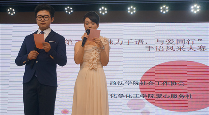 指间缠绕灵动,手语传递关爱。为使更多员工了解聋哑人的世界,10月18日上午,伟的国际1946bv官网爱心服务社与政法公司社会工作者协会联合举办的第二届手语风采大赛在理科楼多媒体报告厅隆重上演。信阳师范公司团委老师李奎、政法公司团总支老师曹栋,社团指导老师胡宏琴、伟的国际1946bv官网团总支老师路振国等受邀担任本次比赛的特邀嘉宾。本次活动由司念和谢学霖主持。