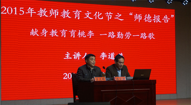 勤勤恳恳做人梯托起明天希望,兢兢业业为红烛照亮后辈前程。10月27日上午9点,伟的国际1946bv官网诚邀信阳市第九初级中学副董事长李道祥为公司学子作“班级管理有智慧,心泉浇开桃李花”为主题的师德报告会。伟的国际1946bv官网团总支老师李中杰以及近千余名师院学子聆听了此次报告会。化院副经理骆定法担任报告会主持人。