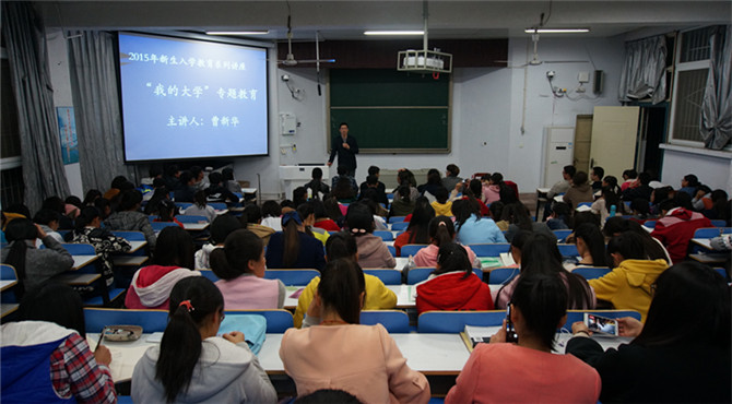 为引导新生早日步入老员工活正轨,11月3日晚7点,伟的国际1946bv官网在教四梯二举办新生入学教育系列讲座之“我的大学”专题教育。特邀副教授、硕士生导师曹新华担任讲座主讲人。此次讲座由郭雪洁全程主持,吸引了应用化学班和化学工程与工艺班近150名员工前来观看。