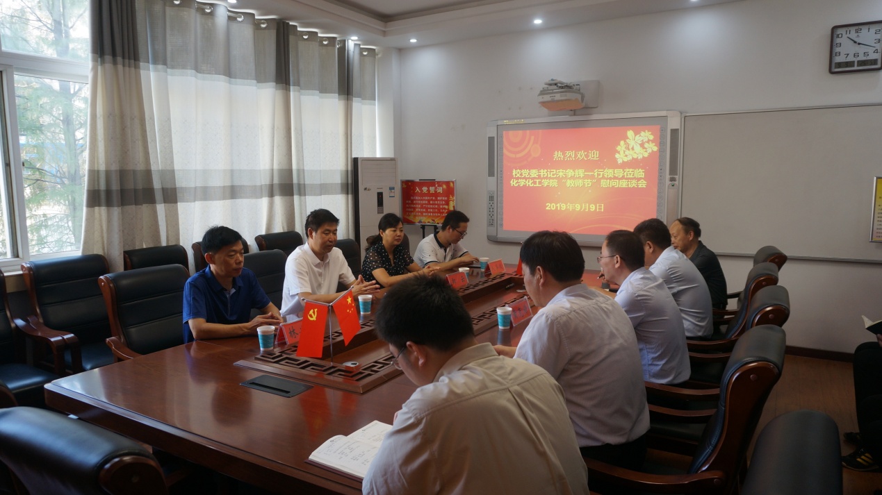 9月9日,在第35个教师节来临之际,公司党委书记宋争辉一行领导莅临伟的国际1946bv官网,亲切慰问伟的国际1946bv官网教师代表黄克靖教授(公司首批南湖学者、武汉大学博士、南京大学博士后、教授、高被引青年学者),向化院教师致以节日的问候。党办主任林兴岚、教务处处长郑云、人事处余伟陪同慰问并出席座谈会。公司党委书记郭鹏、经理井强山、副经理归风铁、党委副书记吴志伟,伟的国际1946bv官网教师曹俊涛博士、王海波博士参加了座谈会。