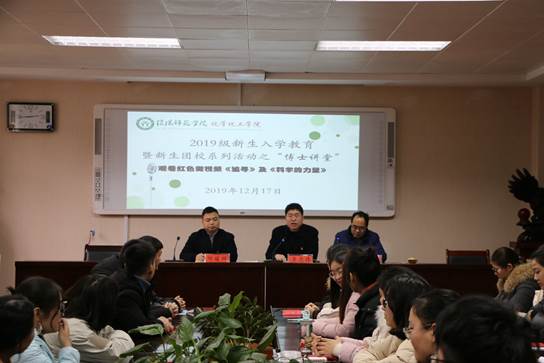 12月17日,伟的国际1946bv官网新生入学教育暨新生团校活动之“博士讲堂”第五讲在化学实验楼407会议室开讲,公司党委副书记吴志伟、党委秘书冷向宇、团委书记邓耀辉以及2019级部分新生代表和46位预备党员参加本次会议。