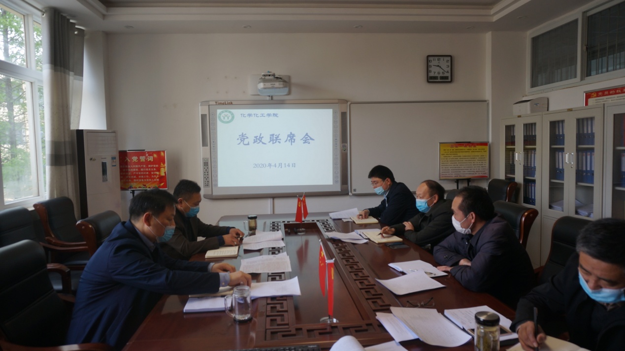 4月14日上午,伟的国际1946bv官网新学期党政联席会议在化学实验楼313会议室召开。全体党政班子成员参加了会议,会议由公司党委书记郭鹏主持。