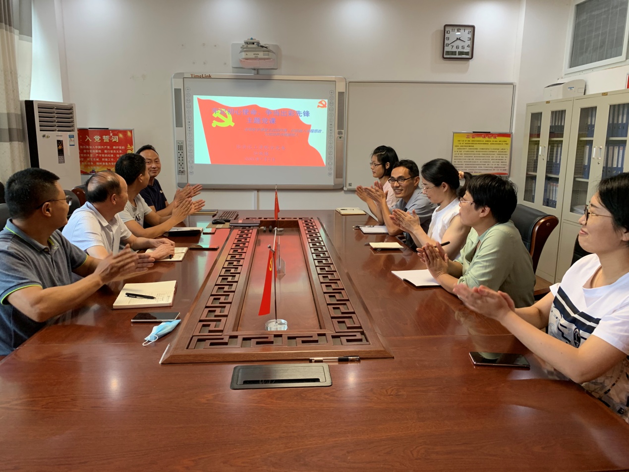 为迎接建党99周年,切实增强党员教育的针对性时效性,按照省委组织部工作安排和《关于在全省高校开展“党课开讲啦”活动的通知》要求,依据集团《“党课开讲啦”活动工作方案》安排,7月2日,化工原理支部和实验教学中心支部联合在实验楼“党员之家”召开“牢记初心使命、争当出彩先锋”主题党课教育。活动由党支部书记姜通武主持,两个支部的党员参加了本次活动。党委委员归风铁副经理以普通党员身份参加所属党支部主题党日活动,并开讲《强化专业课程思政,为党培养合格接班人》的专题党课。