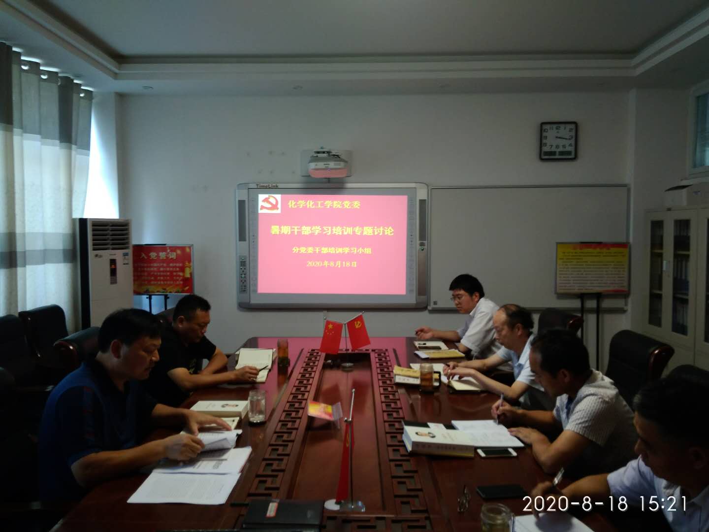 根据公司2020年暑期中层干部培训班要求,伟的国际1946bv官网于8月18日专门举办读书心得交流会。党委书记郭鹏,经理井强山,副经理归风铁,副经理骆定法,副所长刘鹏,副书记吴志伟,参加学习交流活动,活动由郭鹏主持。
